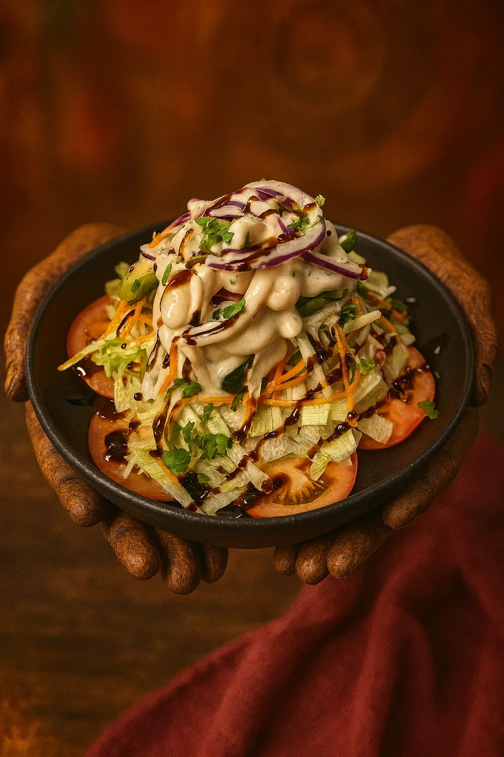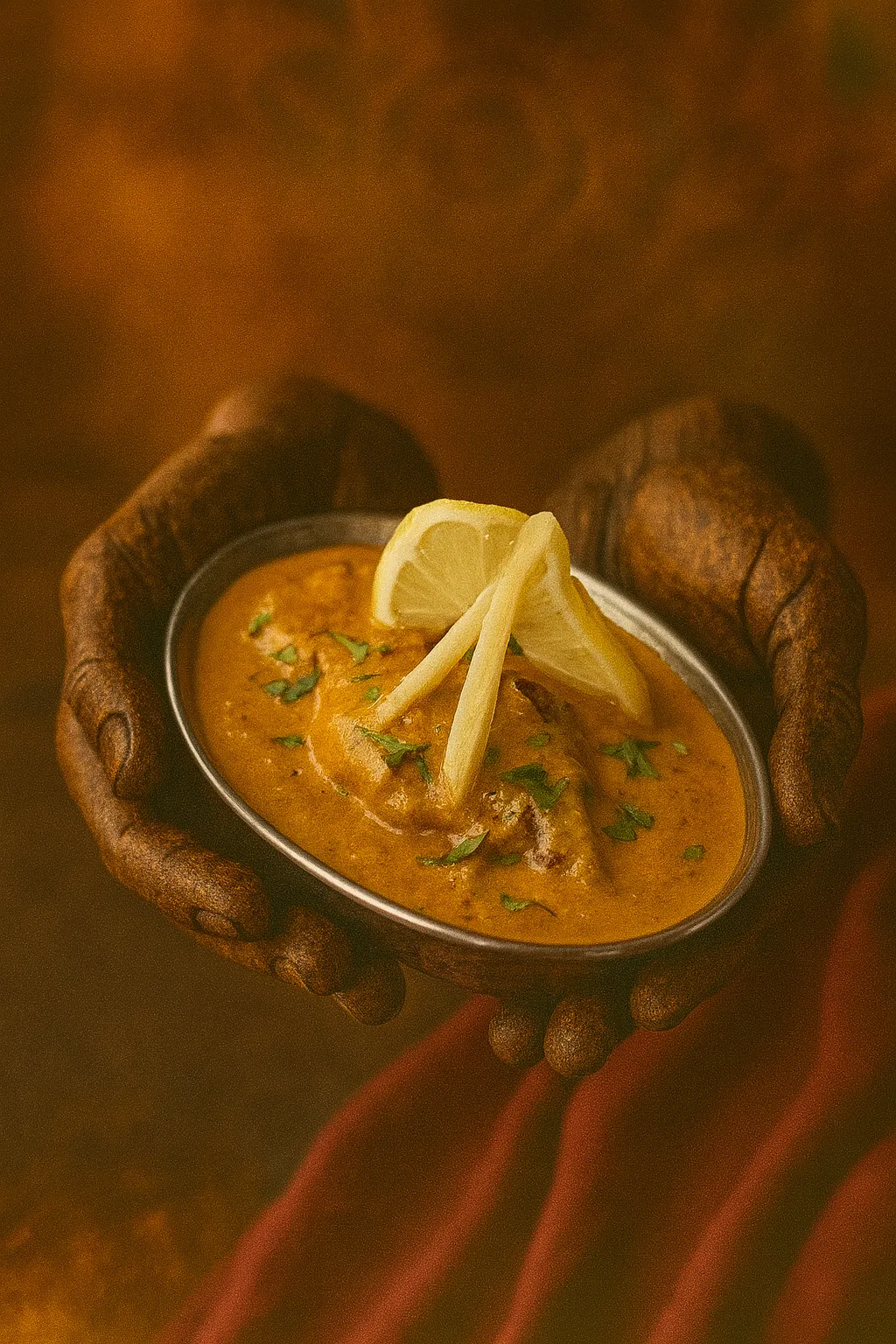 Notre sauce au curry est entièrement faite maison et constitue la base de tous nos plats. Longuement mijotée, elle associe oignon, tomate, ail, huile de tournesol et noix de cajou à un mélange d’épices soigneusement sélectionnées (curry, curcuma, paprika, cannelle, gingembre, muscade, coriandre, cumin, cardamomes, clou de girofle, poivres…), pour une saveur riche, équilibrée et profondément parfumée.